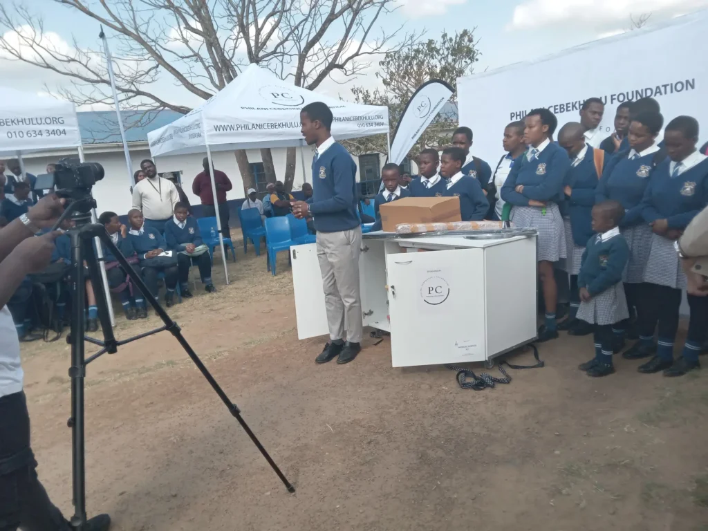 The day began with visits to Mahlabathini Primary School and Mahlabathini High School, where the Foundation officially handed over Science Kits to both schools. These kits are aimed at enhancing practical science learning for Grade 4-7 learners at the primary school and high school learners up to matric level.